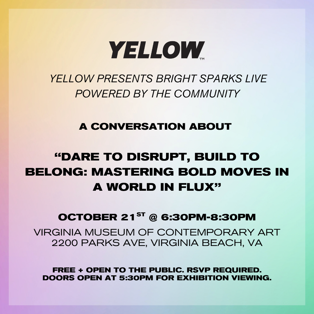 I recently had the opportunity to join YELLOW for a timely discussion on disrupting the status quo, taking risks, building community and leading well, alongside fellow panelists Dr. Elle Harris and Byron L. Edwards. Over the course of an hour, we reflected on our personal and professional journeys, explored the role bold moves play in a world in flux and commended the power of community in advancing meaningful change.